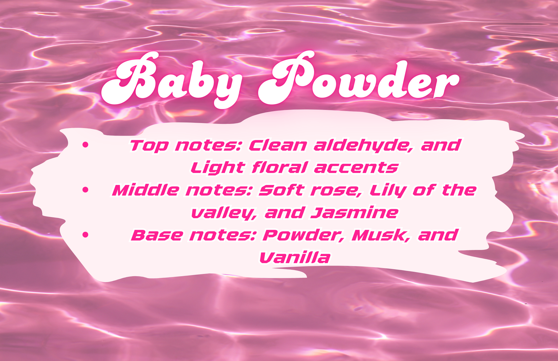 - Base notes: Powder, Musk, and Vanilla